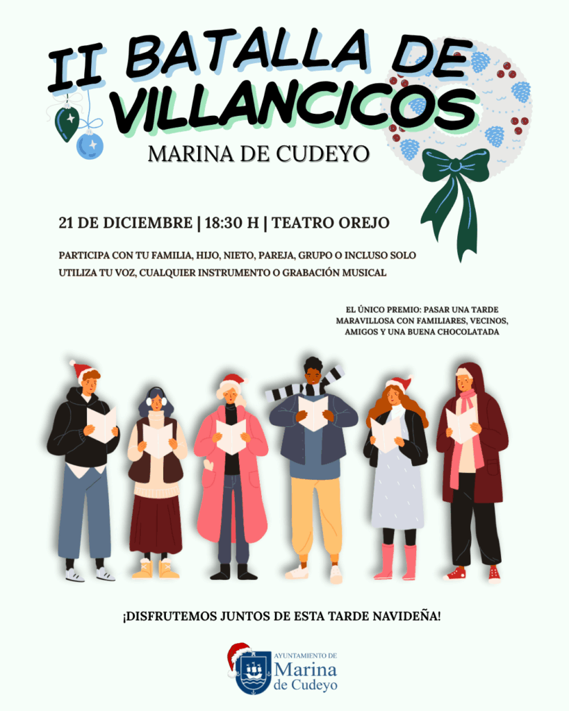 El Ayuntamiento de Marina de Cudeyo invita a todos los vecinos y vecinas a participar en la II Batalla de Villancicos, una cita muy especial para celebrar juntos la llegada de la Navidad. Este evento busca fomentar el espíritu navideño, la convivencia y la participación ciudadana a través de la música y la creatividad.