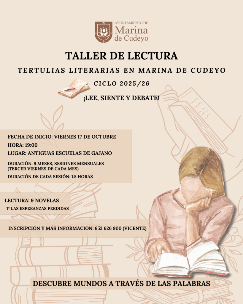 El Ayuntamiento de Marina de Cudeyo pone en marcha una nueva edición del Taller de Lectura y Tertulias Literarias 2025/26, una iniciativa cultural que invita a disfrutar del placer de la lectura compartida, el debate y la reflexión en torno a grandes obras literarias.